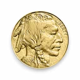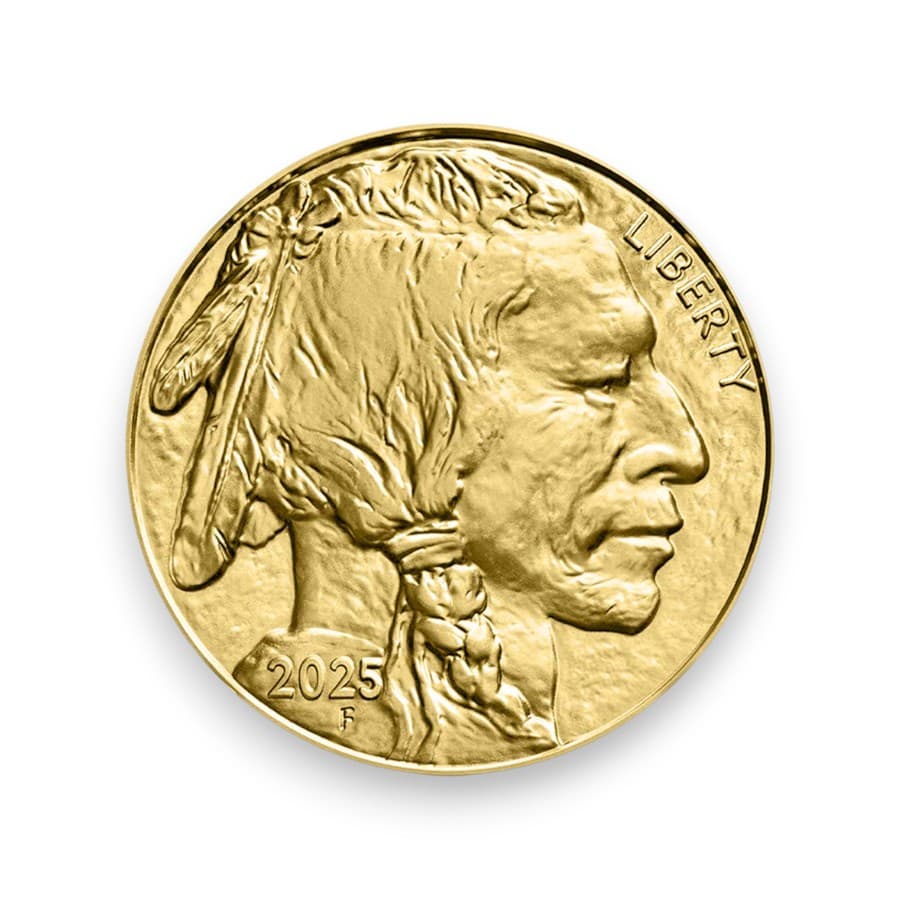 The 2025 American Gold Buffalo 1 oz $50 coin is a highly regarded bullion coin made from .9999 fine 24-karat gold. Weighing one troy ounce, it features the iconic design by James Earle Fraser, first introduced in 1913, with a Native American profile on the obverse and an American buffalo on the reverse. Issued by the U.S. Mint, the coin has a face value of $50 but its real value comes from its gold content, making it a popular choice for both collectors and investors. Known for its purity and classic design, the Gold Buffalo is one of the few coins produced in the U.S. with 24-karat gold, offering an alternative to the more commonly minted 22-karat American Gold Eagle.